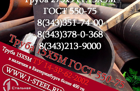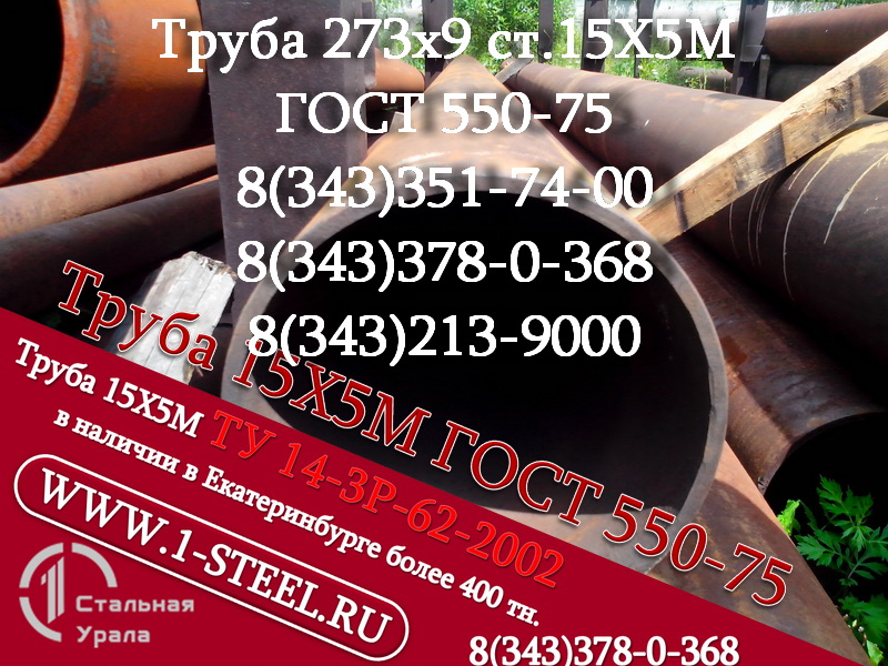 .В данном объявлении указан не весь ассортимент продукции, также в наличии более 500 типоразмеров труб ст. 15Х5М по ГОСТ 550-75 и ТУ 14-3Р 62-2002.