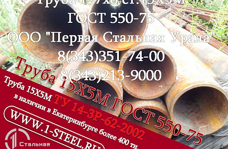 В данном объявлении указан не весь ассортимент продукции, также в наличии более 500 типоразмеров труб ст. 15Х5М по ГОСТ 550-75 и ТУ 14-3Р 62-2002.<br />