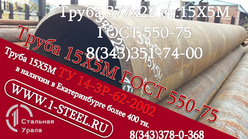 Труба крекинговая 15Х5М ГОСТ 550-75 377,0x22 4,62 м. 0,9 т.<br />
