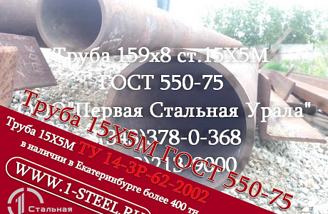 Также более 500 типоразмеров труб ст. 15Х5М по ГОСТ 550-75 и ТУ 14-3Р 62-2002 из наличия в Екатеринбурге.