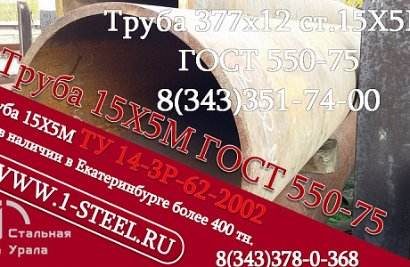 Труба крекинговая 15Х5М    ГОСТ 550-75    377,0x12    9,2-10,6 м.    5,9 т.<br />