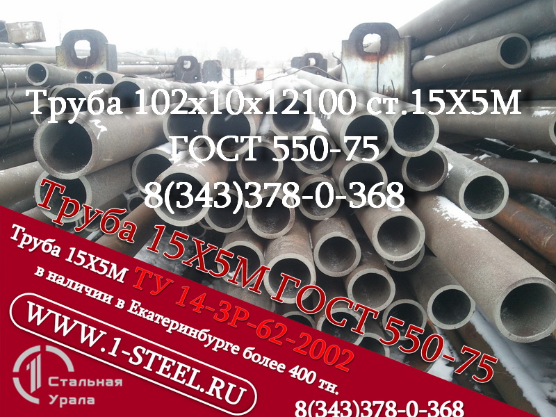 Также более 500 типоразмеров труб ст. 15Х5М по ГОСТ 550-75 и ТУ 14-3Р 62-2002 из наличия в Екатеринбурге.<br />