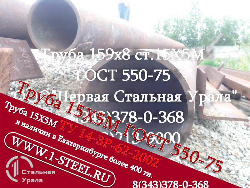 Также более 500 типоразмеров труб ст. 15Х5М по ГОСТ 550-75 и ТУ 14-3Р 62-2002 из наличия в Екатеринбурге.
