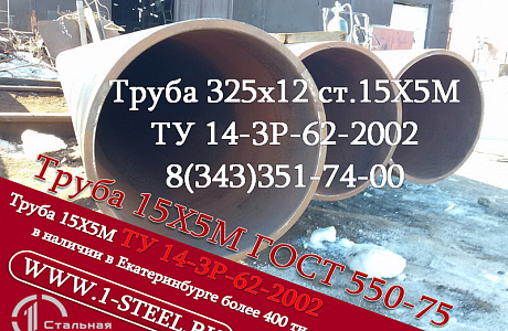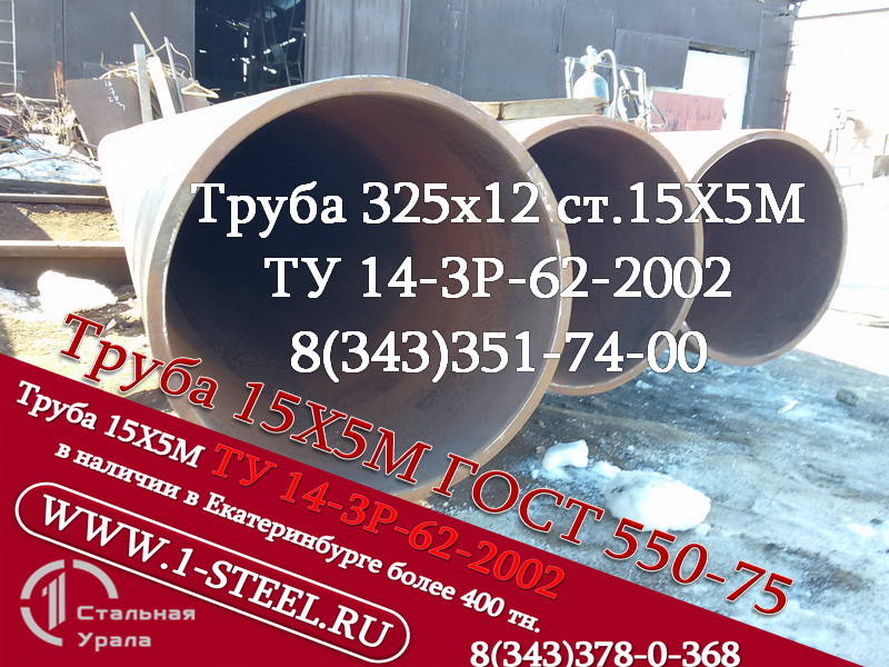 Также более 500 типоразмеров труб ст. 15Х5М по ГОСТ 550-75 и ТУ 14-3Р 62-2002 из наличия в Екатеринбурге.<br />