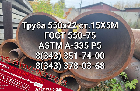 Труба крекинговая 15Х5М ГОСТ 550-75 550,0x22 3,0/3,5 м. 2,1 т.