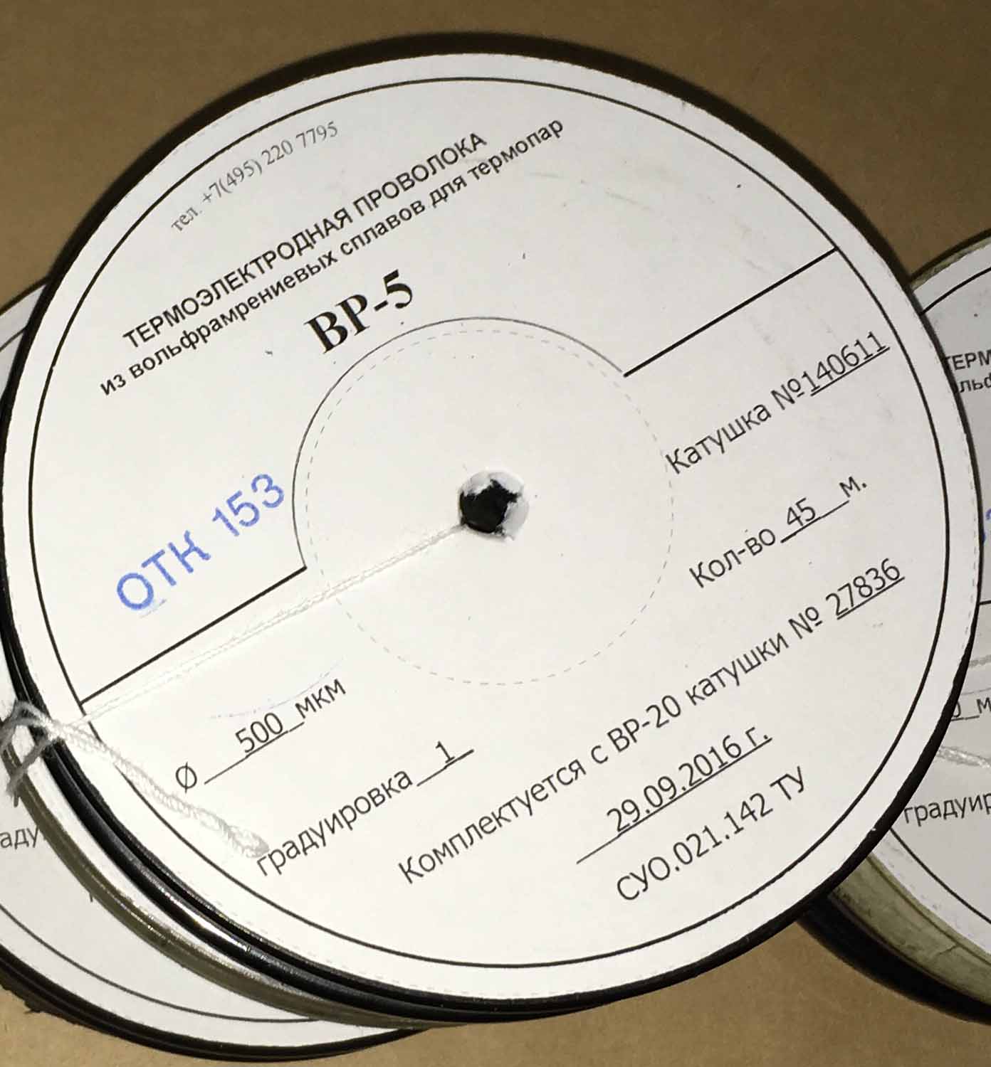 Продаю вольфрам рениевую термопарную проволоку ВР5/20 А-1 диаметром 0,35 мм. по цене 570 руб/парный метр, диаметром 0,5 мм. по цене 2750 руб/парный метр. Термопарная проволока произведена на собственном оборудовании и сертифицирована РОСТЕСТ. Градуировка проведена до температуры 1870 градусов. Мы единственные в России производители имеющие сертификат качества на термопарную проволоку. Мы производим градуировку термопар. Тарас тел. 8-495-20-7795 www.paraterm.com