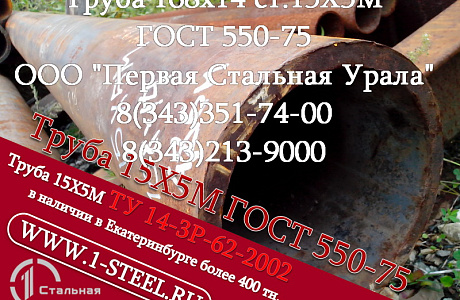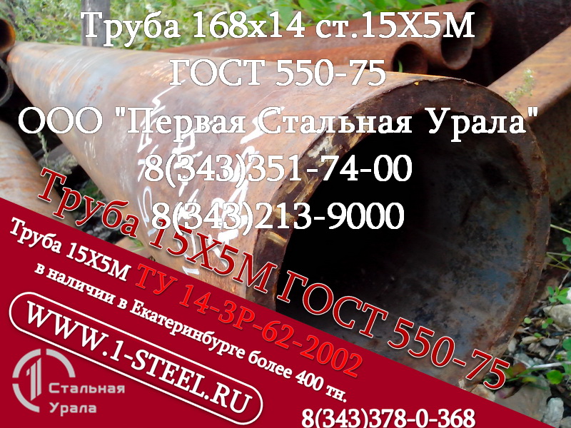 Также более 500 типоразмеров труб ст. 15Х5М по ГОСТ 550-75 и ТУ 14-3Р 62-2002 из наличия в Екатеринбурге.