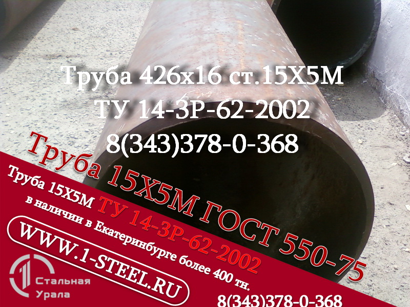 Также более 500 типоразмеров труб ст. 15Х5М по ГОСТ 550-75 и ТУ 14-3Р 62-2002 из наличия в Екатеринбурге.<br />