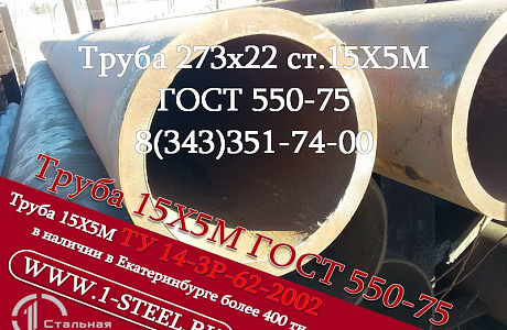 Также более 500 типоразмеров труб ст. 15Х5М по ГОСТ 550-75 и ТУ 14-3Р 62-2002 из наличия в Екатеринбурге.
