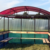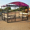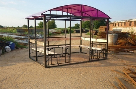 Каркас беседки изготовлен из профильной трубы 40х40, имеет достаточный запас прочности, что позволяет конструкции выдерживать большие снеговые и ветровые нагрузки (нет необходимости разбирать на зиму). Устанавливается на фундамент или брус, и просто на землю или тротуарную плитку.