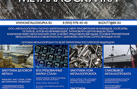 Так же заинтересованны в покупке нержавеющего проката, цветного проката, прецизионных сплавов.