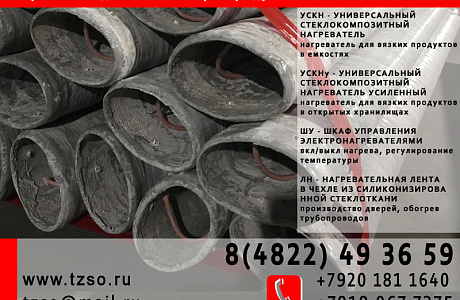 Назначение. Универсальный стеклокомпозитный нагреватель (УСКН) предназначен для разогрева и поддержания температуры вязких нефтепродуктов, битума, гудрона, мазута, масла, агрессивных диэлектрических сред в емкостях, хранилищах, цистернах, различных резервуарах, а также воздушных и невзрывоопасных газовых сред.